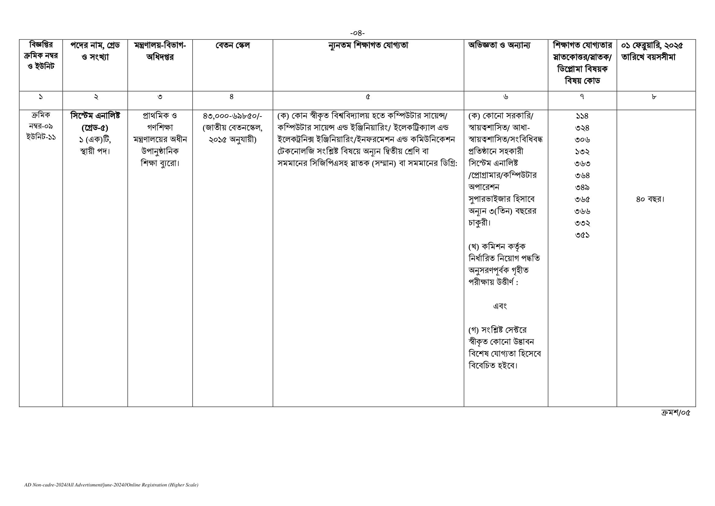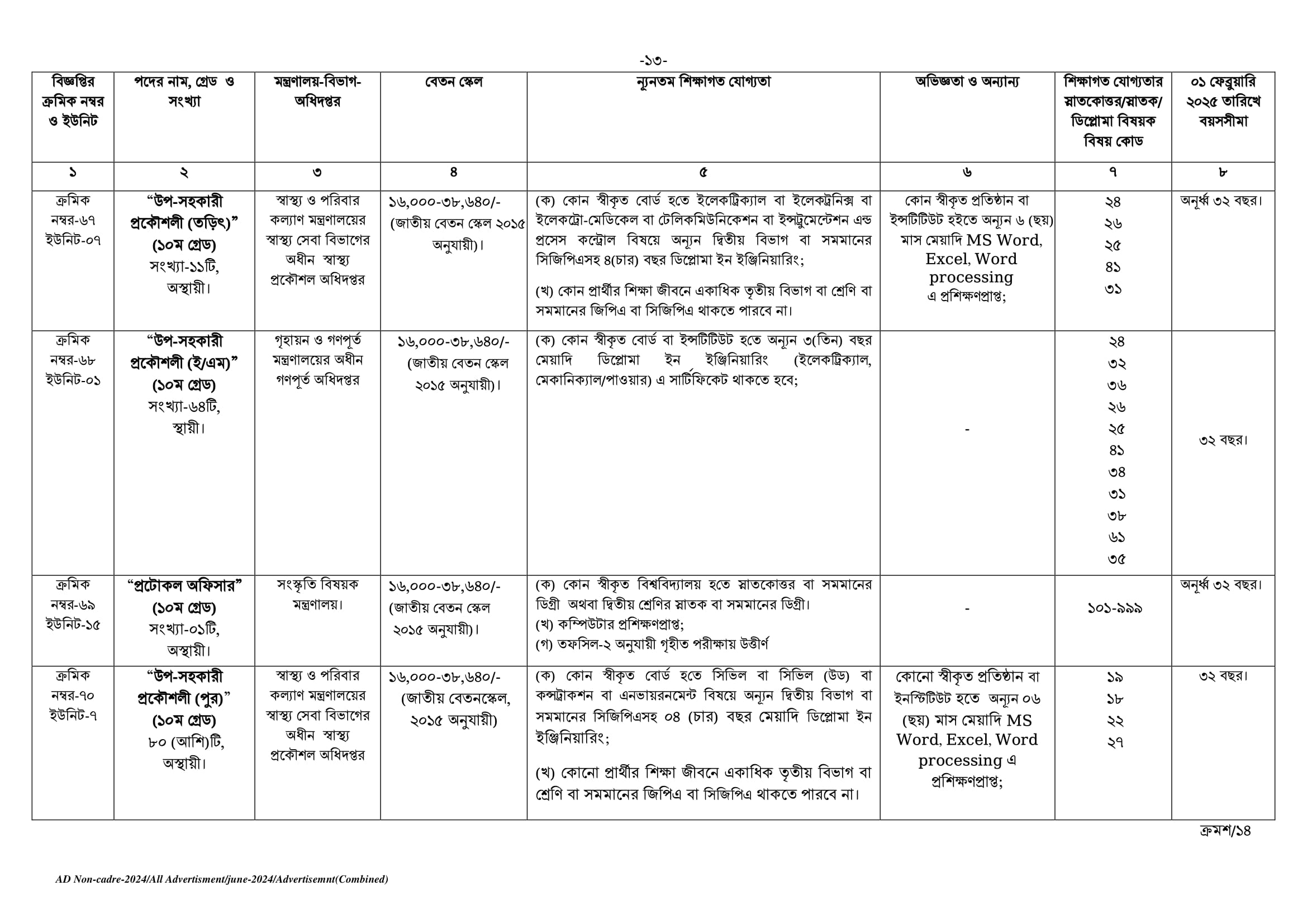 About the job openings below many are connected to Bangladesh public service commission BPSC. BPSC None Cadre job circular 2025 was converted to an image file so that all the people easy to read or download the BPSC None Cadre job circular 2025 properly. That converted image file has been given below.